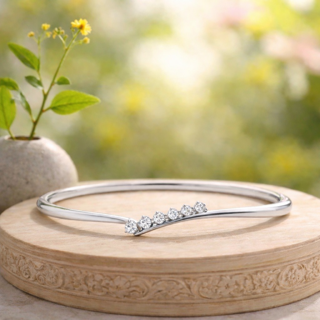 18ct White Gold 6 Stone Round Brilliant Cut Diamond Bangle