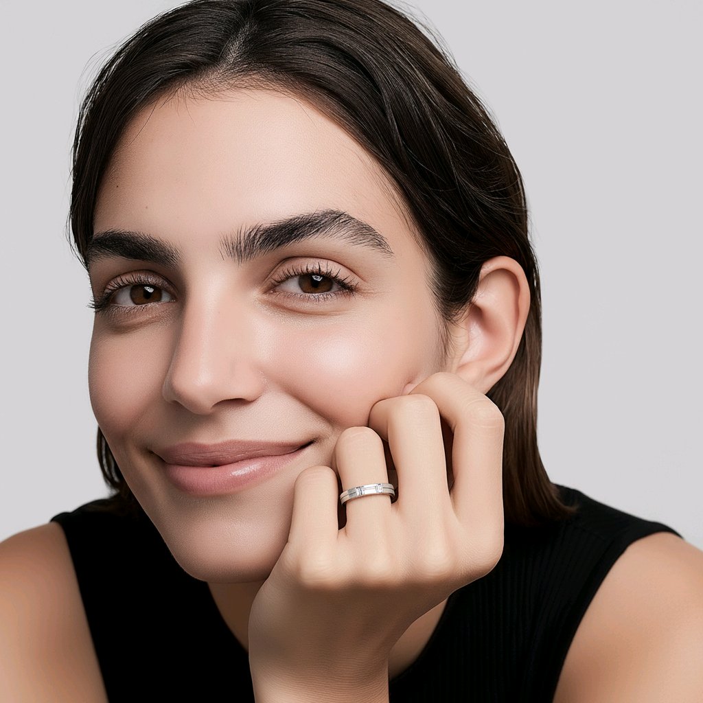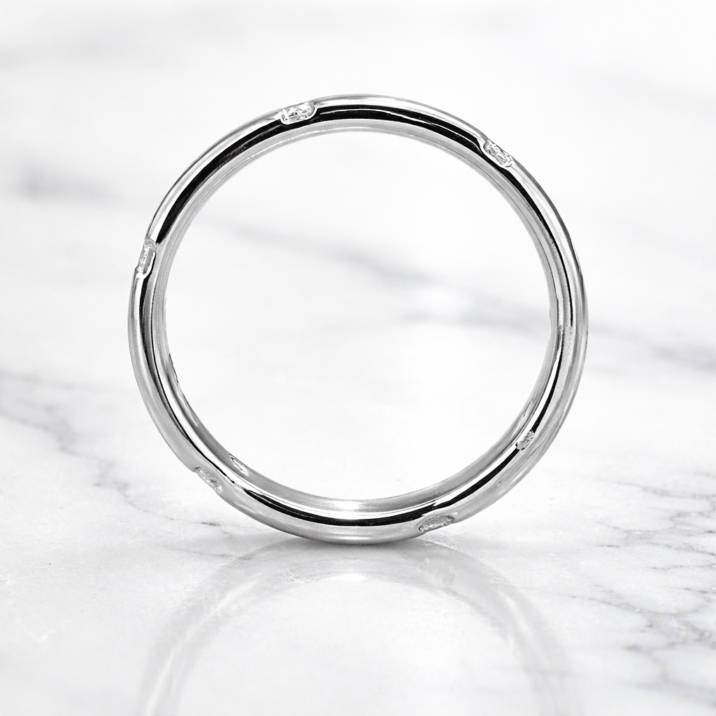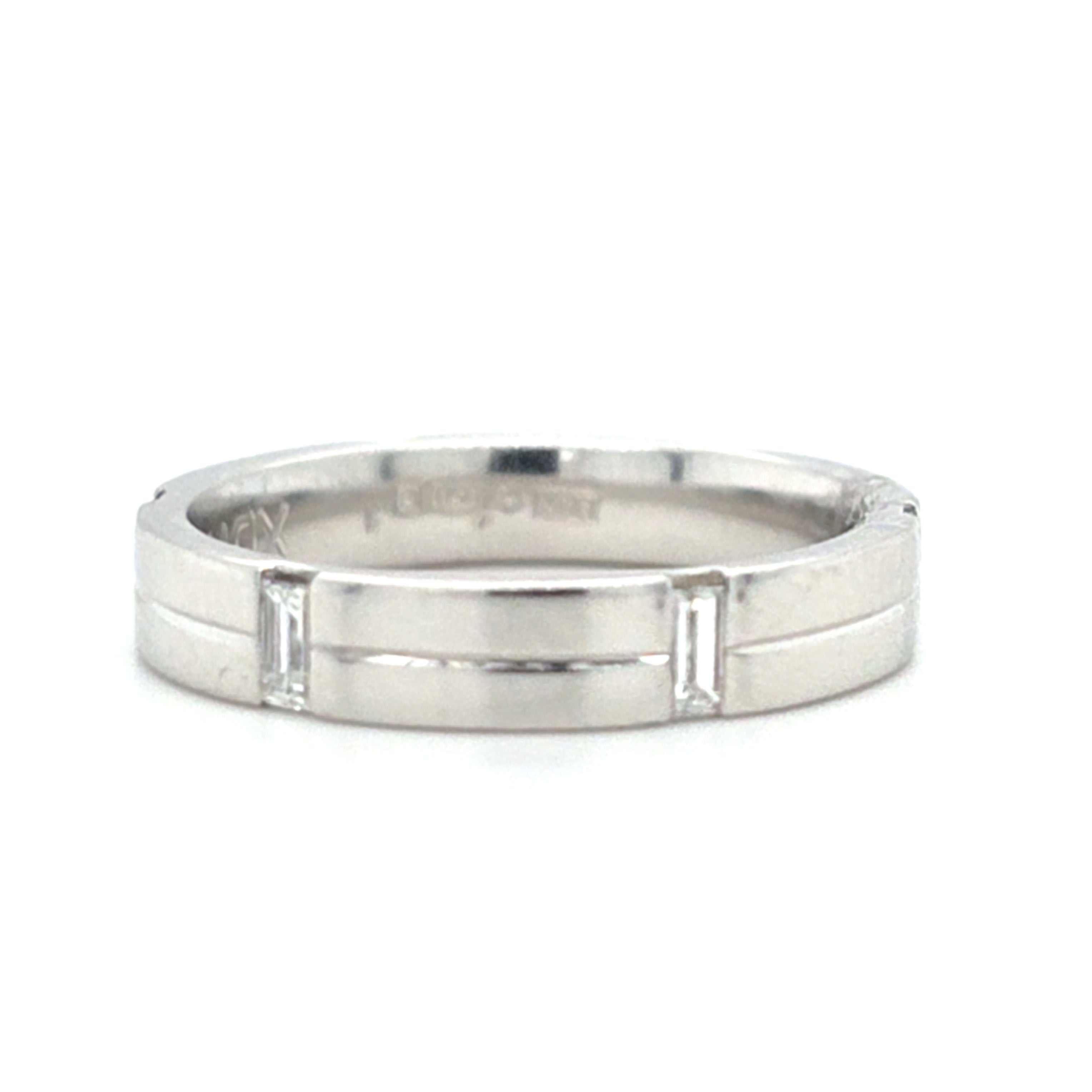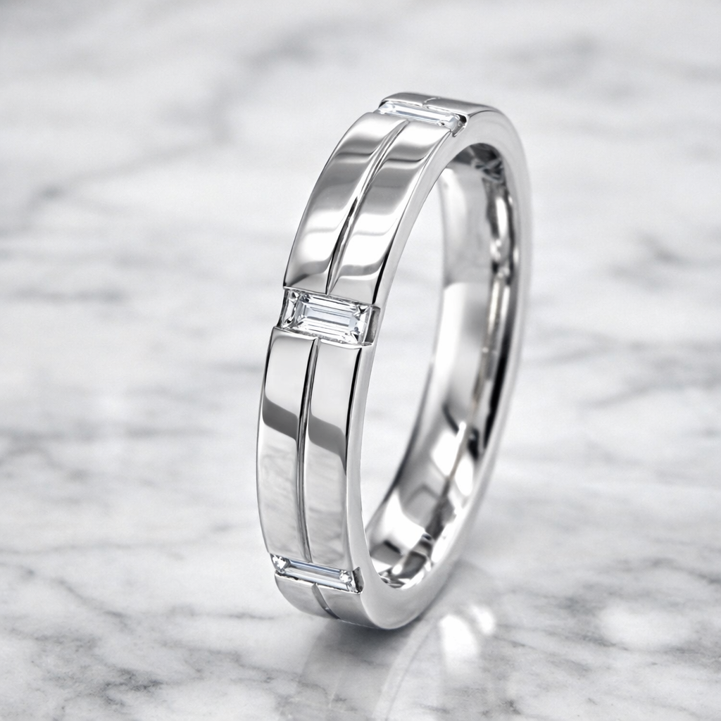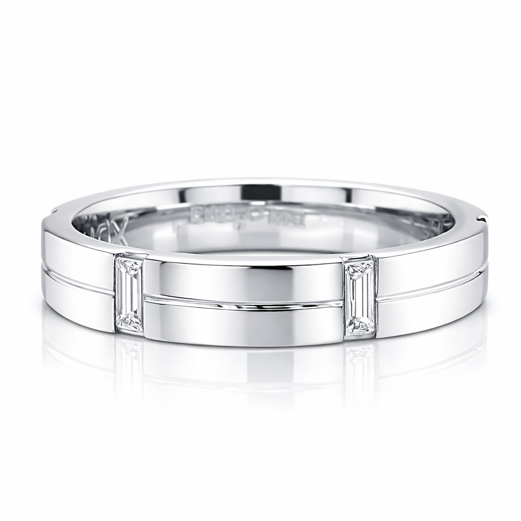 Discover timeless elegance with this exquisite Baguette Cut Diamond Invisible Set Wedding Band, featuring 0.36 carats of premium diamonds. The invisible setting technique creates a seamless, modern aesthetic where diamonds appear to float across the band, maximising sparkle and light reflection. Crafted with precision, this design combines contemporary sophistication with enduring beauty, making it the perfect choice for those seeking a distinctive wedding band that captures attention without compromising on refined style. An investment in luxury that transcends trends.