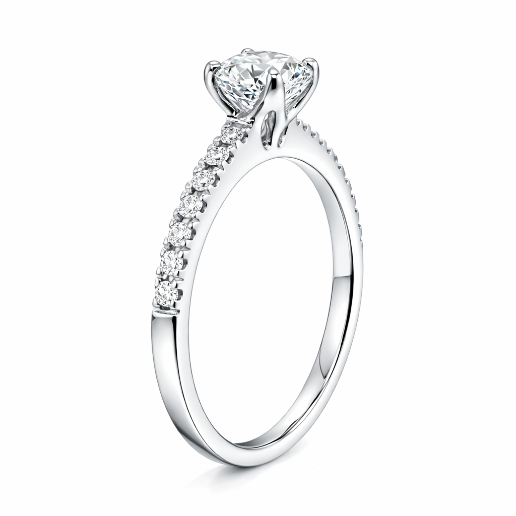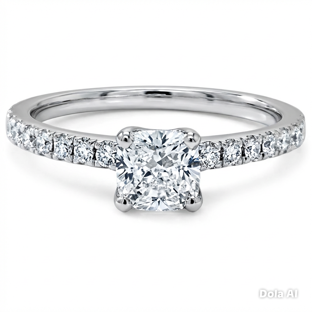 Cushion Cut 0.70ct Diamond Engagement Ring with Diamond Shoulders