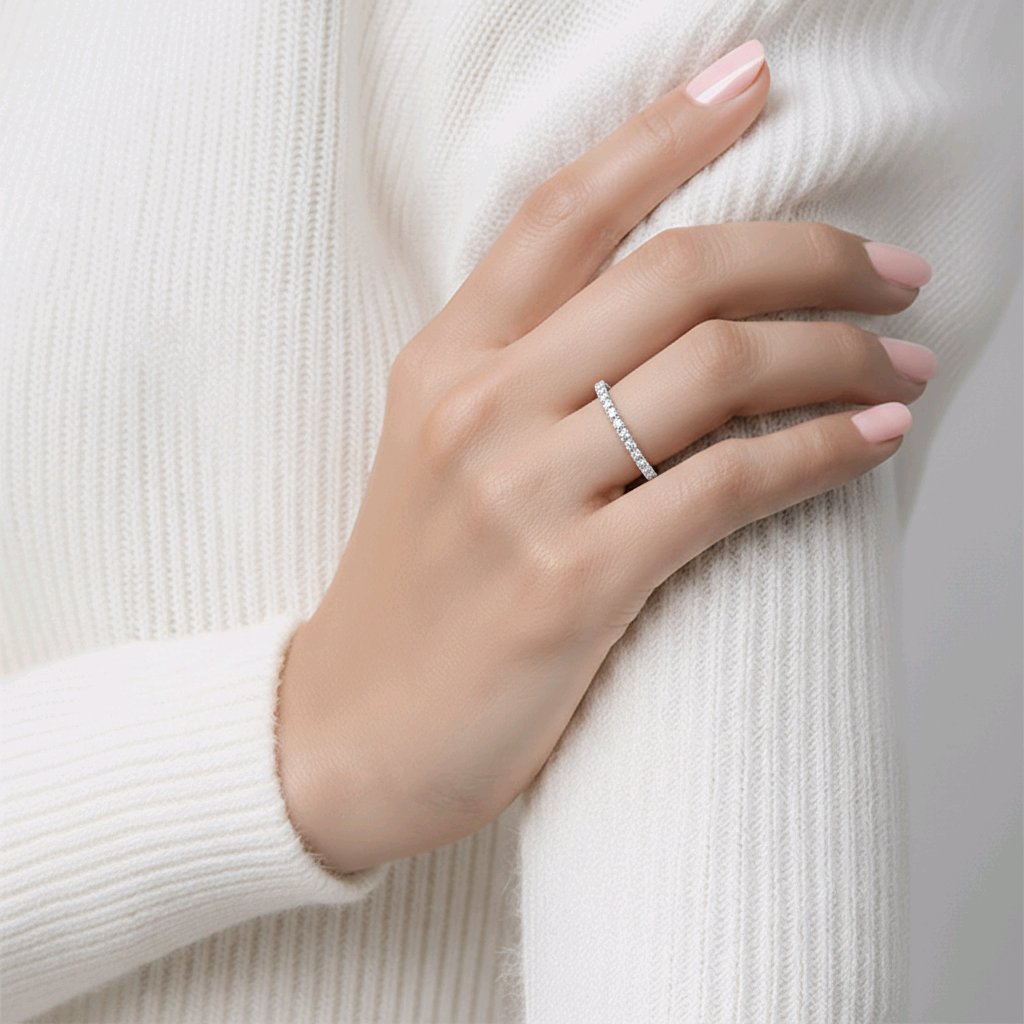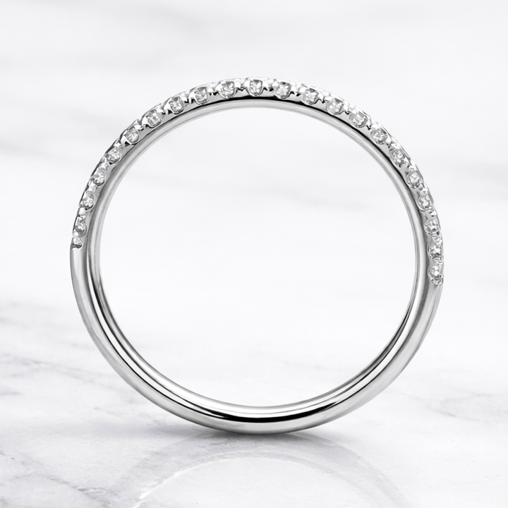 Round Brilliant Cut Diamond Microset Half Hoop Wedding Band 1.5mm