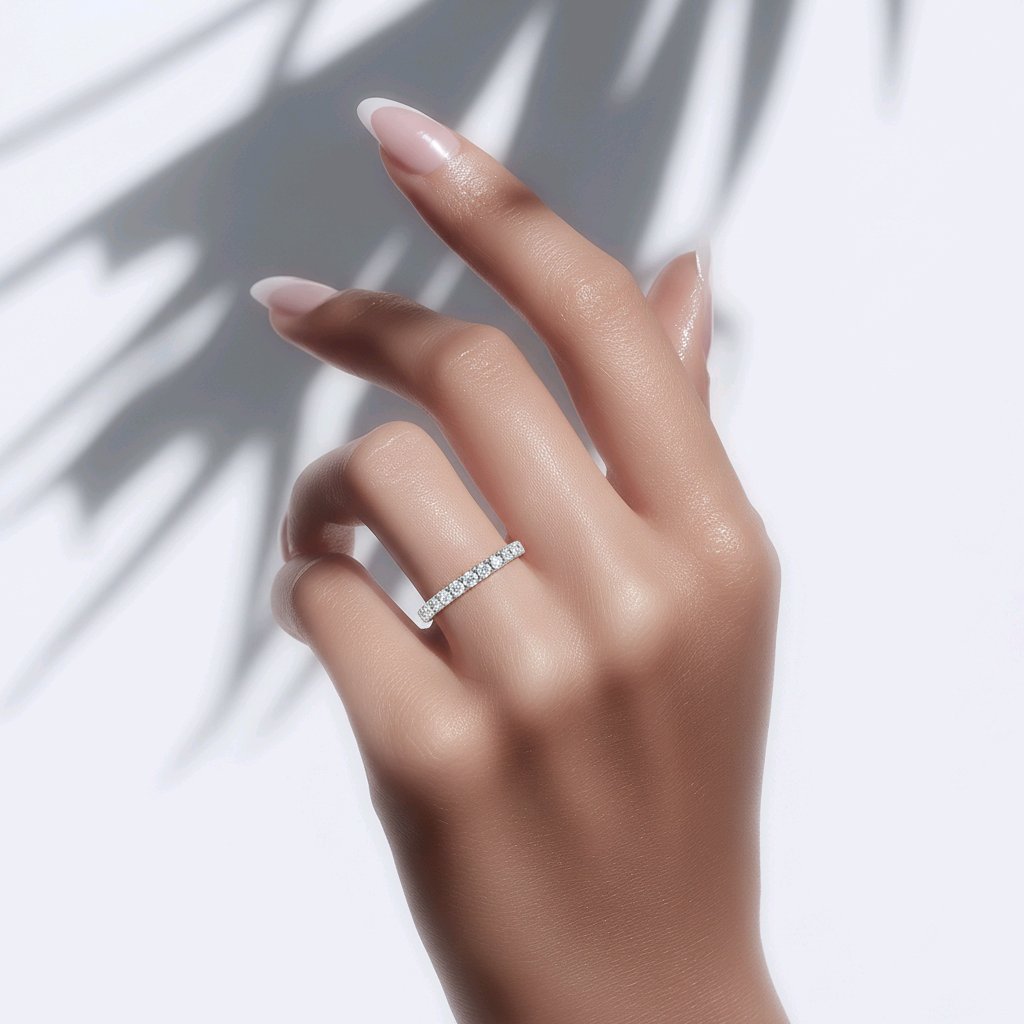 Discover timeless elegance with this exquisite Diamond Microset Wedding Band, featuring a refined 2.4mm width that strikes the perfect balance between presence and subtlety. Each diamond is meticulously microset into precious metal, creating a seamless sparkle that catches light from every angle. Ideal as a standalone statement or paired with an engagement ring, this band showcases superior craftsmanship and enduring beauty. A sophisticated choice for those who appreciate fine jewellery that celebrates commitment with understated luxury.
