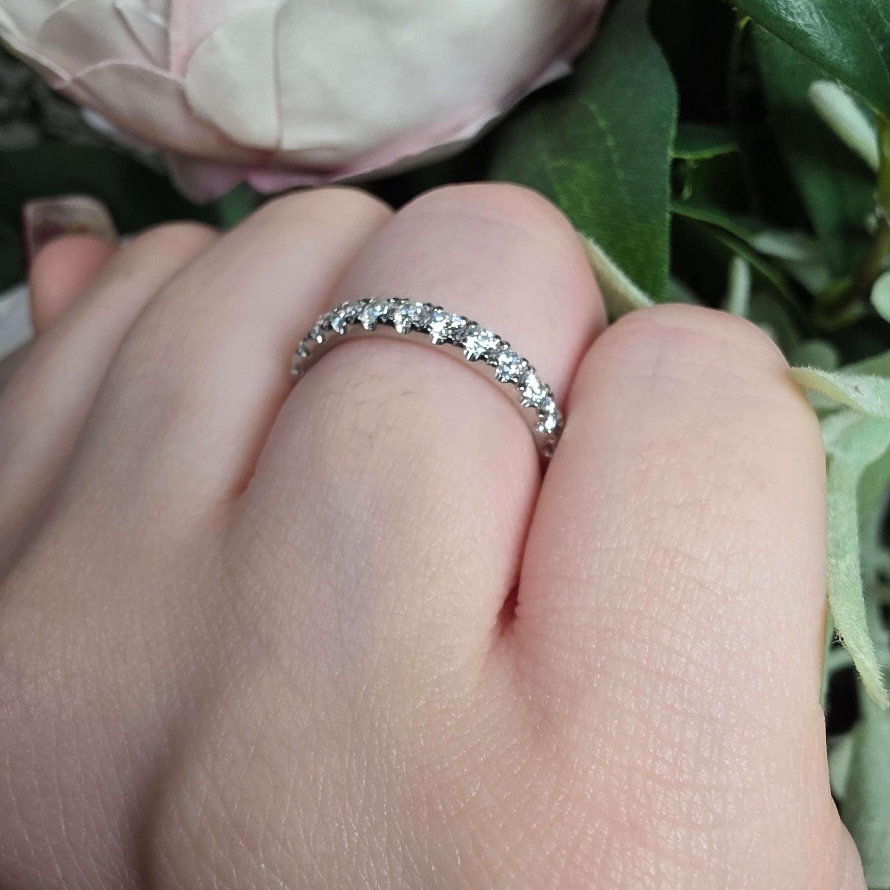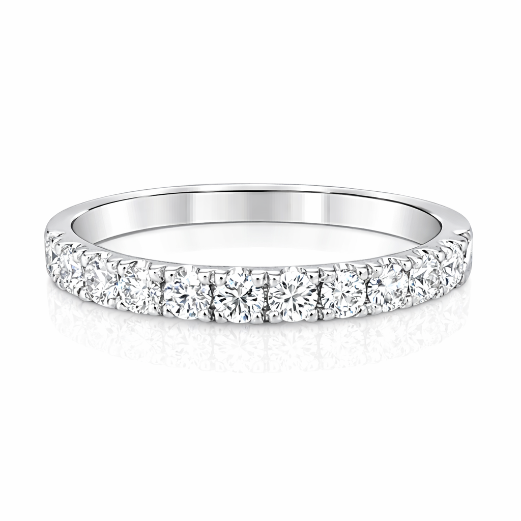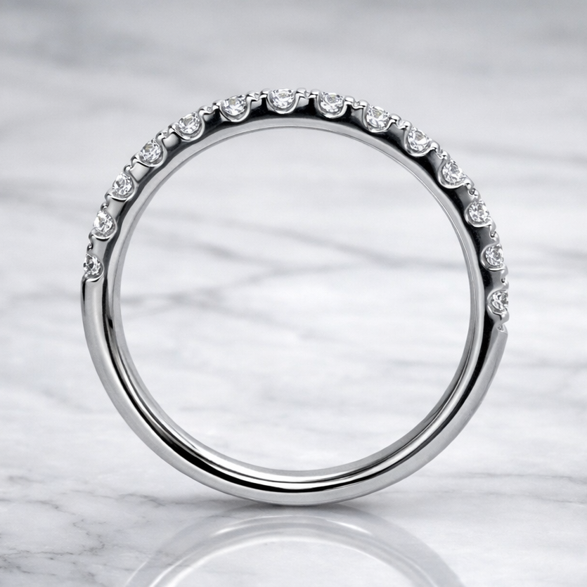 Round Brilliant Cut Diamond Half Hoop Microset Wedding Band 2.4mm