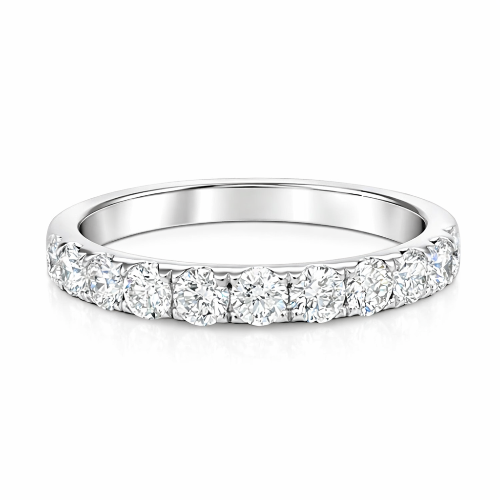 Round Brilliant Cut Diamond Microset Half Hoop Wedding Band 2.6mm