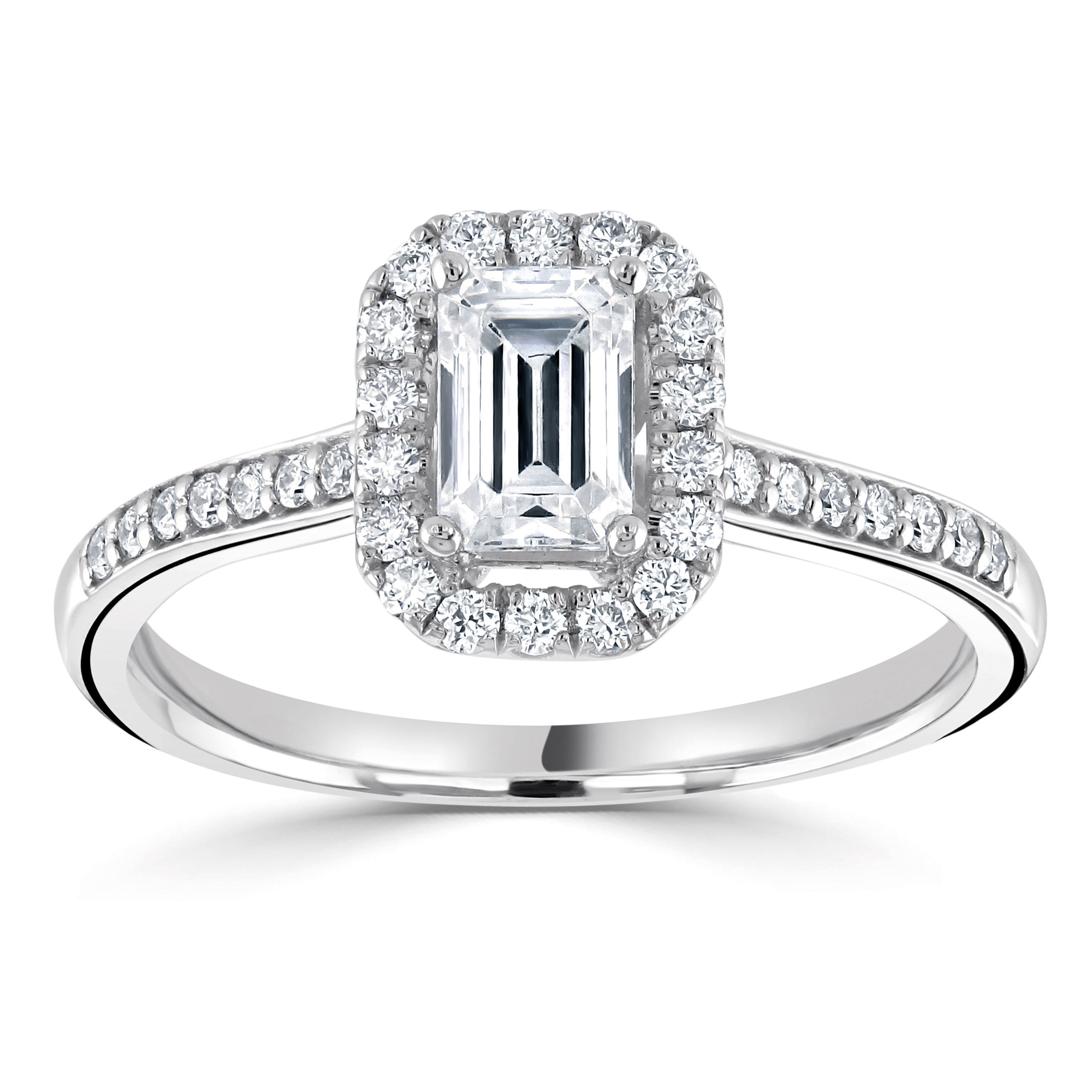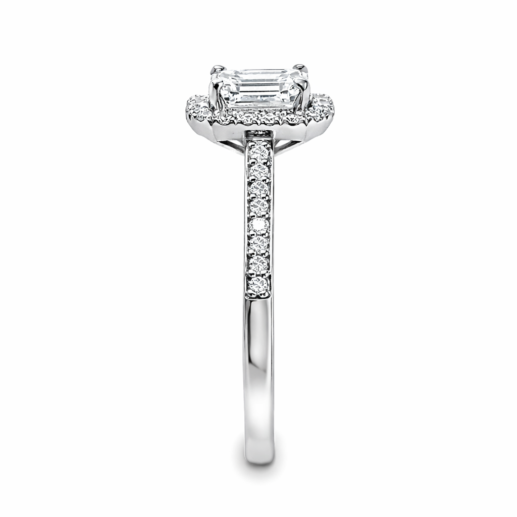 Emerald Cut 0.71ct Diamond Halo Engagement Ring