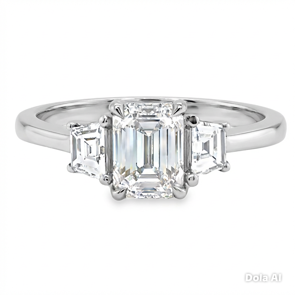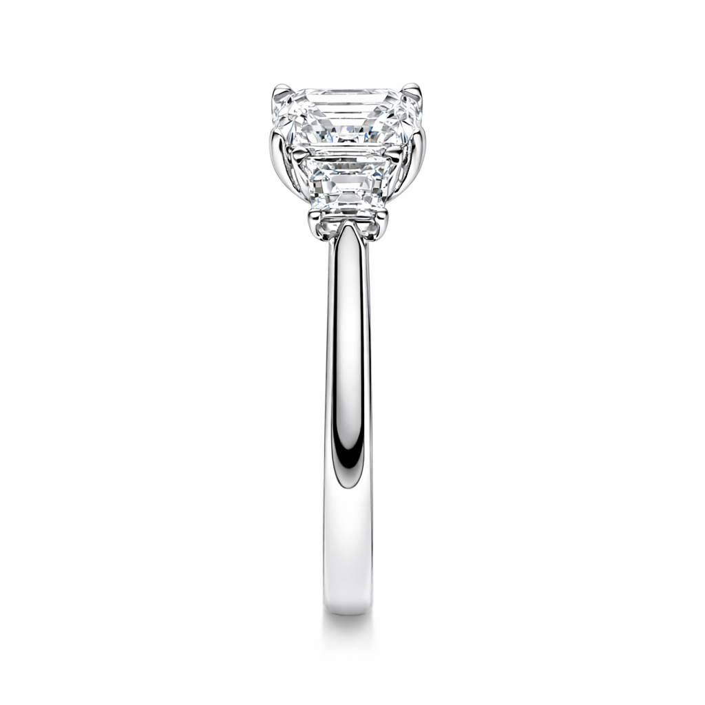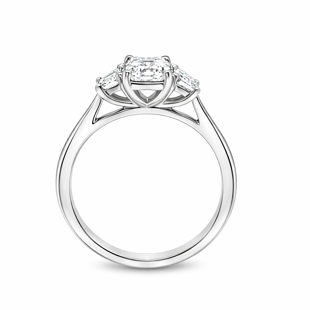 Emerald Cut 1.00ct Diamond with Trapeze Cut Diamond Trilogy Engagement Ring
