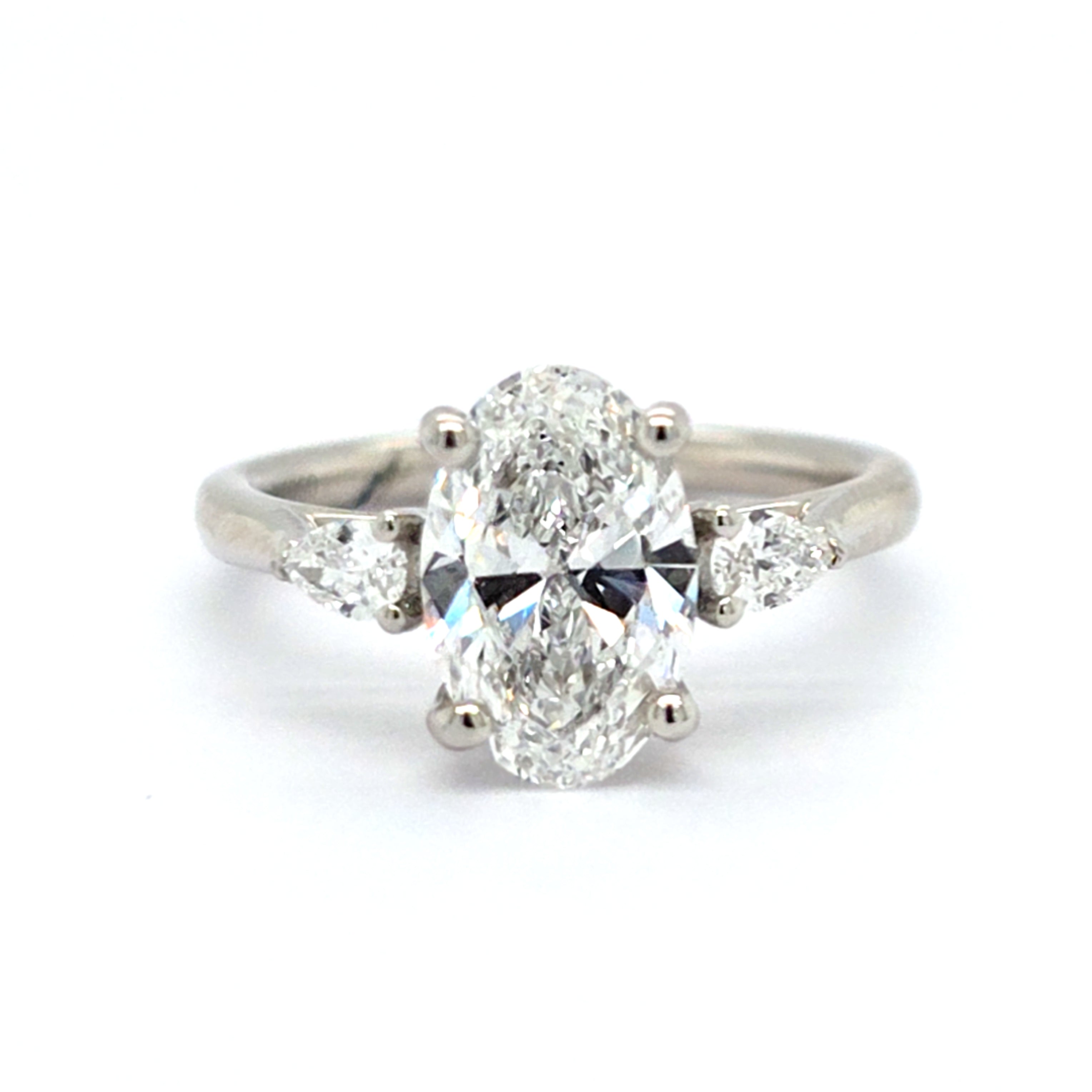 Lab Grown Oval Cut 2.00ct Diamond Engagement Ring With Lab Grown Pear Cut Diamond Side Stones