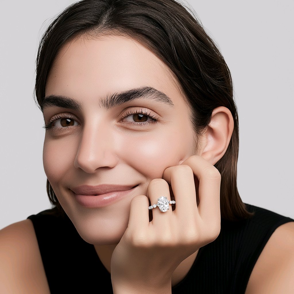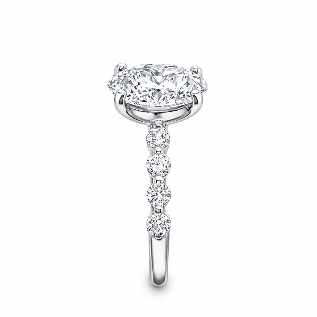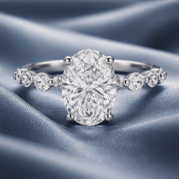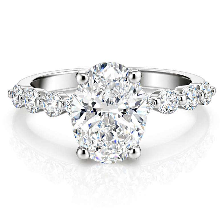 Lab Grown Oval Cut 2.07ct Diamond Engagement Ring With Round Brilliant Cut Side Stones