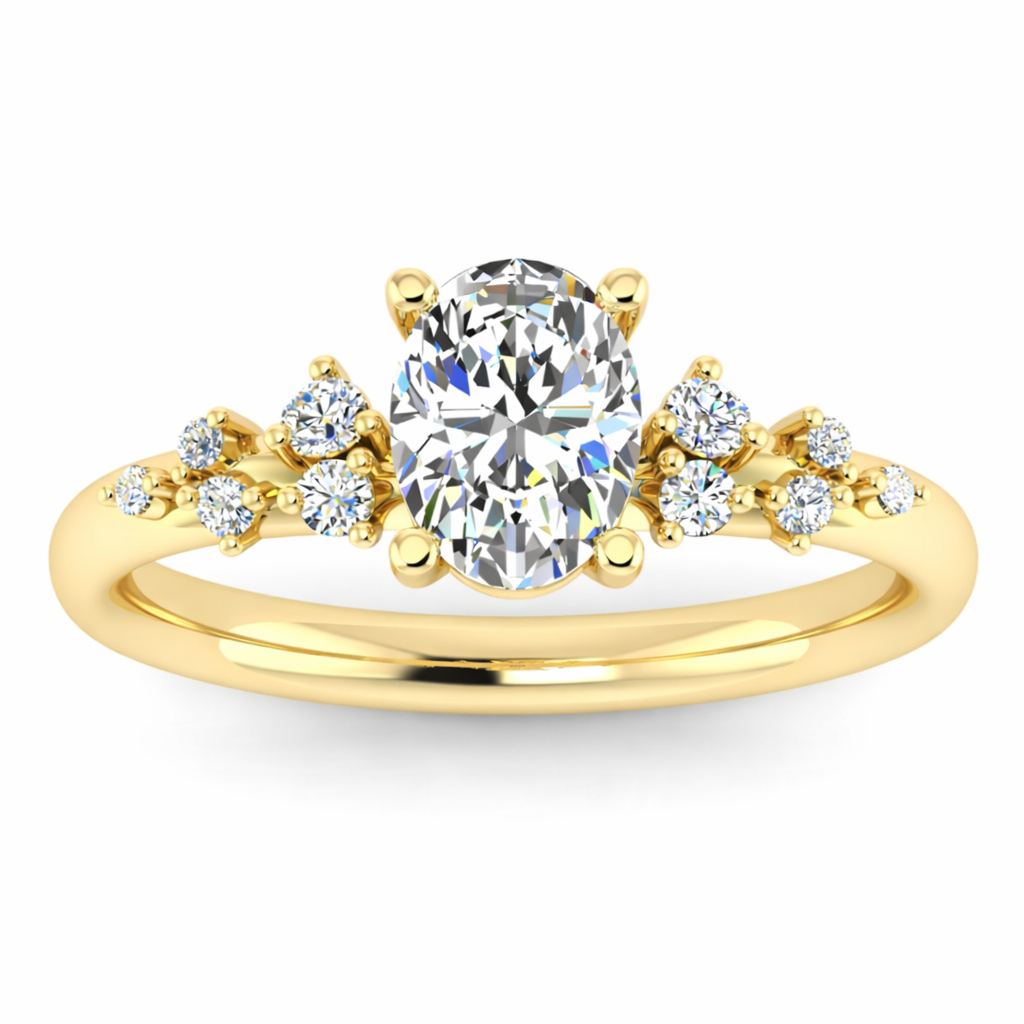Lab-grown diamonds offer exceptional value without compromising on brilliance or durability. This engagement ring features a stunning 2.53-carat oval-cut centre stone, celebrated for its elongated silhouette and impressive light performance. Diamond shoulders frame the main stone with added sparkle and sophistication. Crafted to exacting standards, this ring combines ethical sourcing with timeless elegance—ideal for those seeking a meaningful symbol of commitment with modern sensibilities.