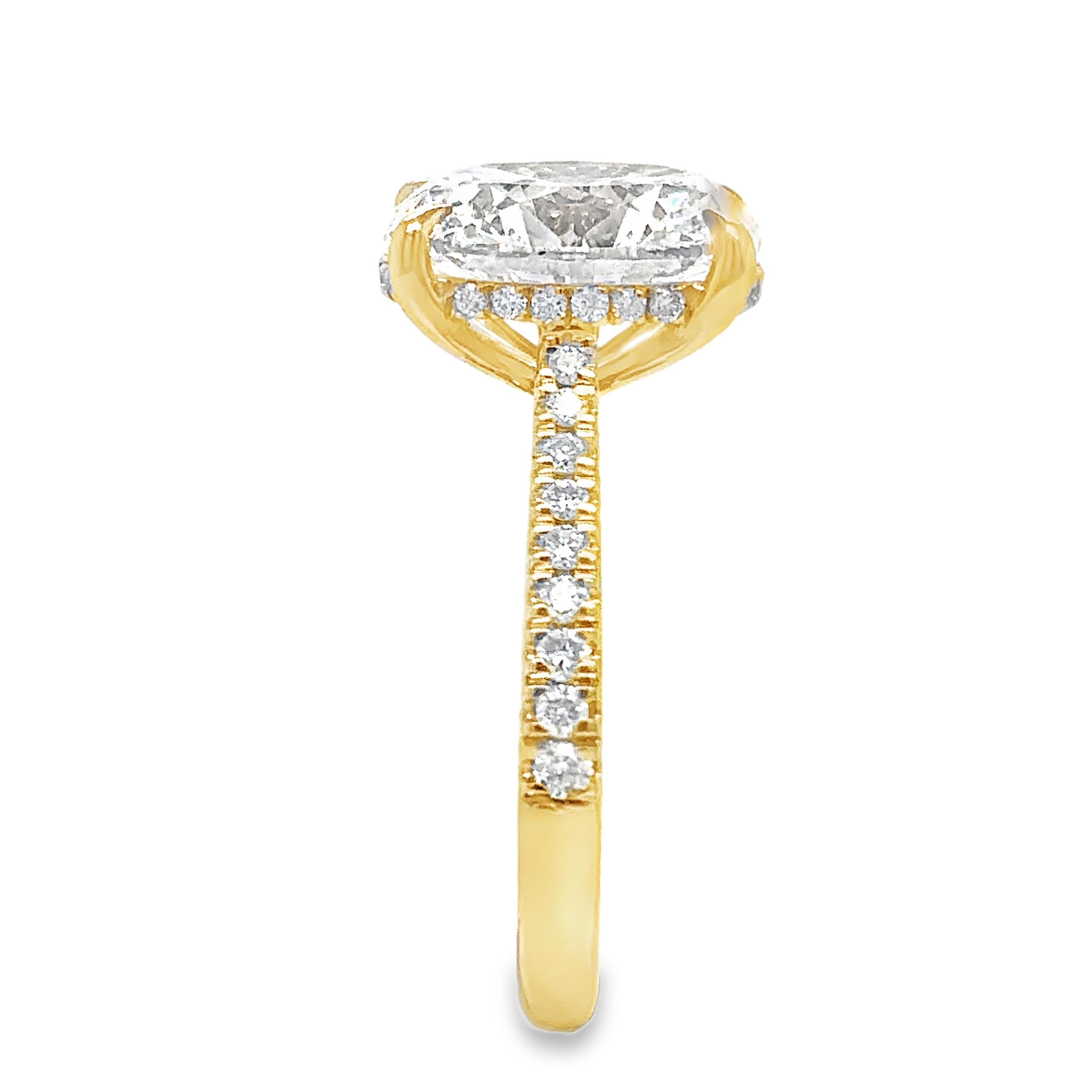 Lab Grown Oval Cut 3.50ct Diamond Engagement Ring with Diamond Shoulders & Hidden Halo