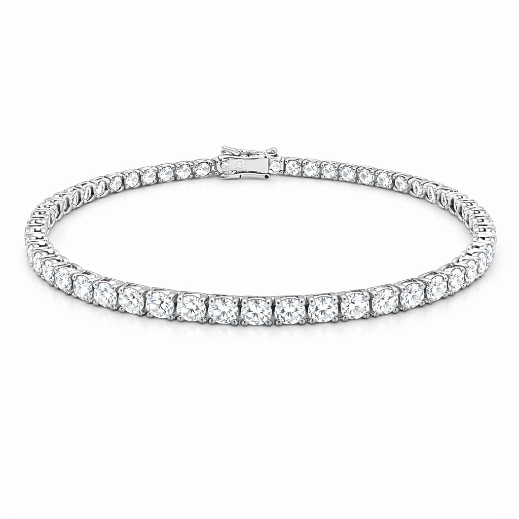 A timeless tennis bracelet featuring lab-grown round brilliant cut diamonds totalling 6.20 carats. Each stone is precisely set in a continuous line, creating an elegant sparkle that catches light from every angle. The lab-grown diamonds offer exceptional clarity and brilliance while providing an ethical alternative to mined stones. Perfect for everyday wear or special occasions, this bracelet combines classic design with contemporary values. The secure setting ensures durability, while the refined aesthetic complements both casual and formal styling.