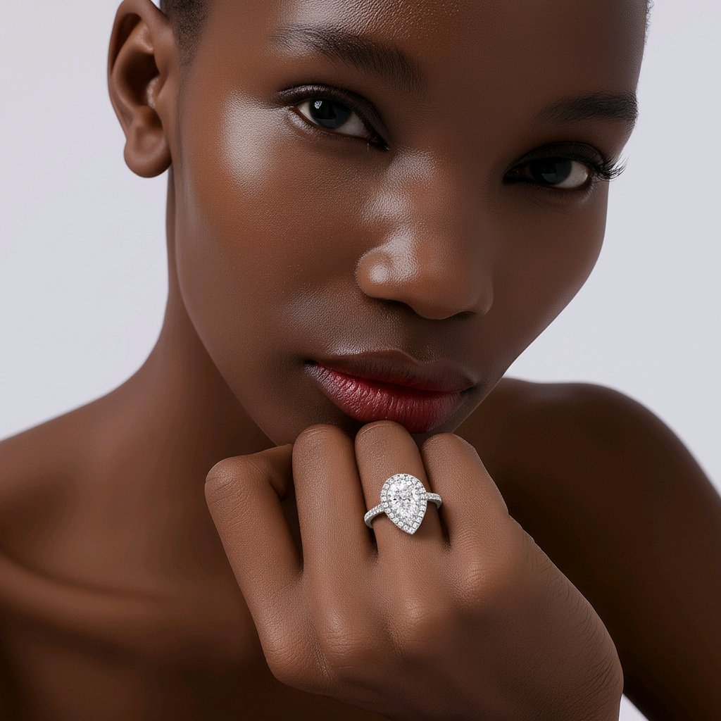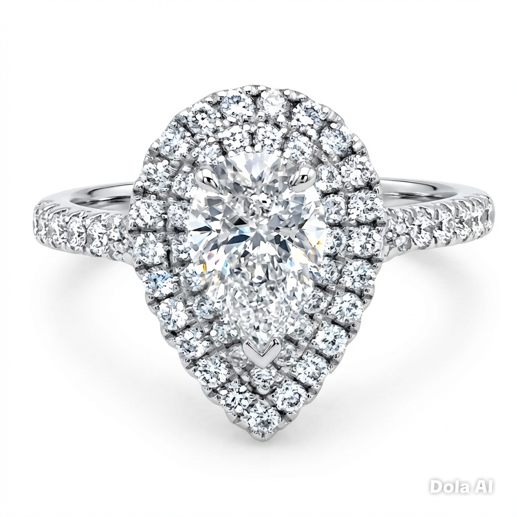 Pear Cut 1.00ct Diamond Double Halo Engagement Ring