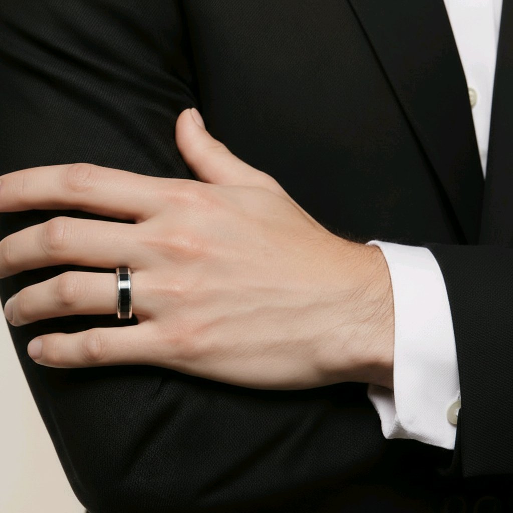 Luxurious and striking, our Platinum & Ceramic Court Wedding Band is the epitome of refined elegance. Crafted from the finest platinum and ceramic materials, this band exudes sophistication and style. Its sleek and timeless design makes it a symbol of everlasting love and commitment. A perfect choice for those who appreciate the finer things in life.