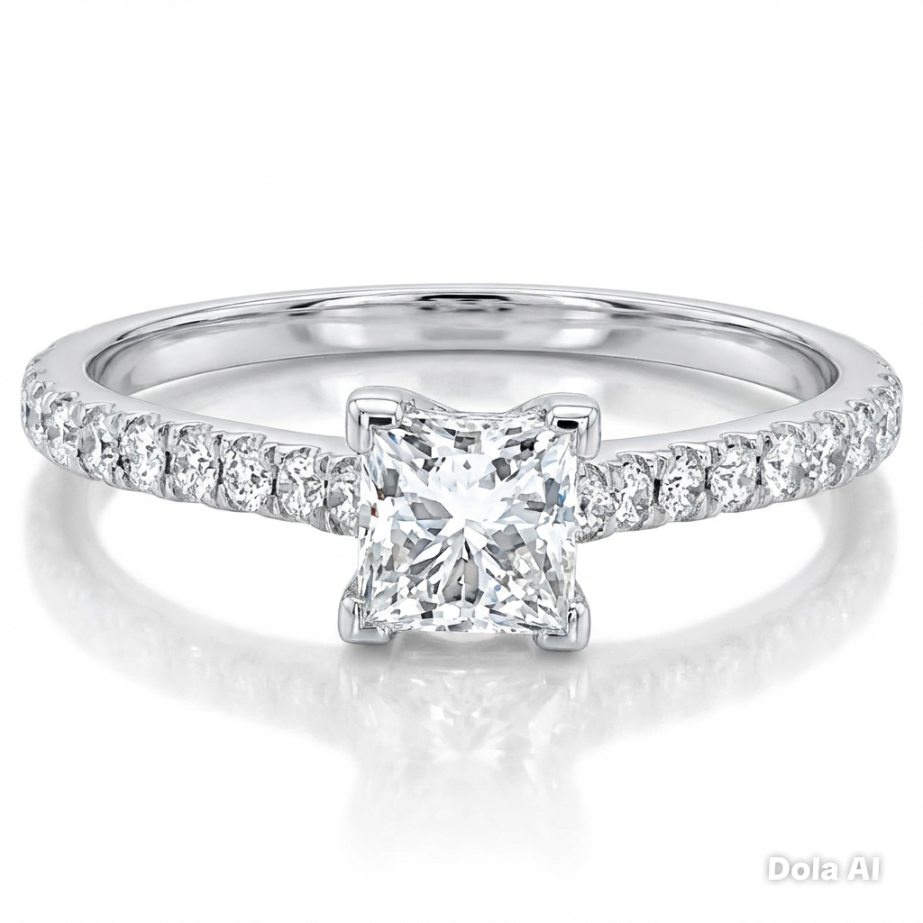 Princess Cut 0.54ct Diamond Engagement Ring with Diamond Shoulders