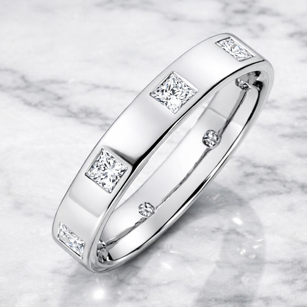 Princess Cut 0.68 Diamond Invisible Set Wedding Band