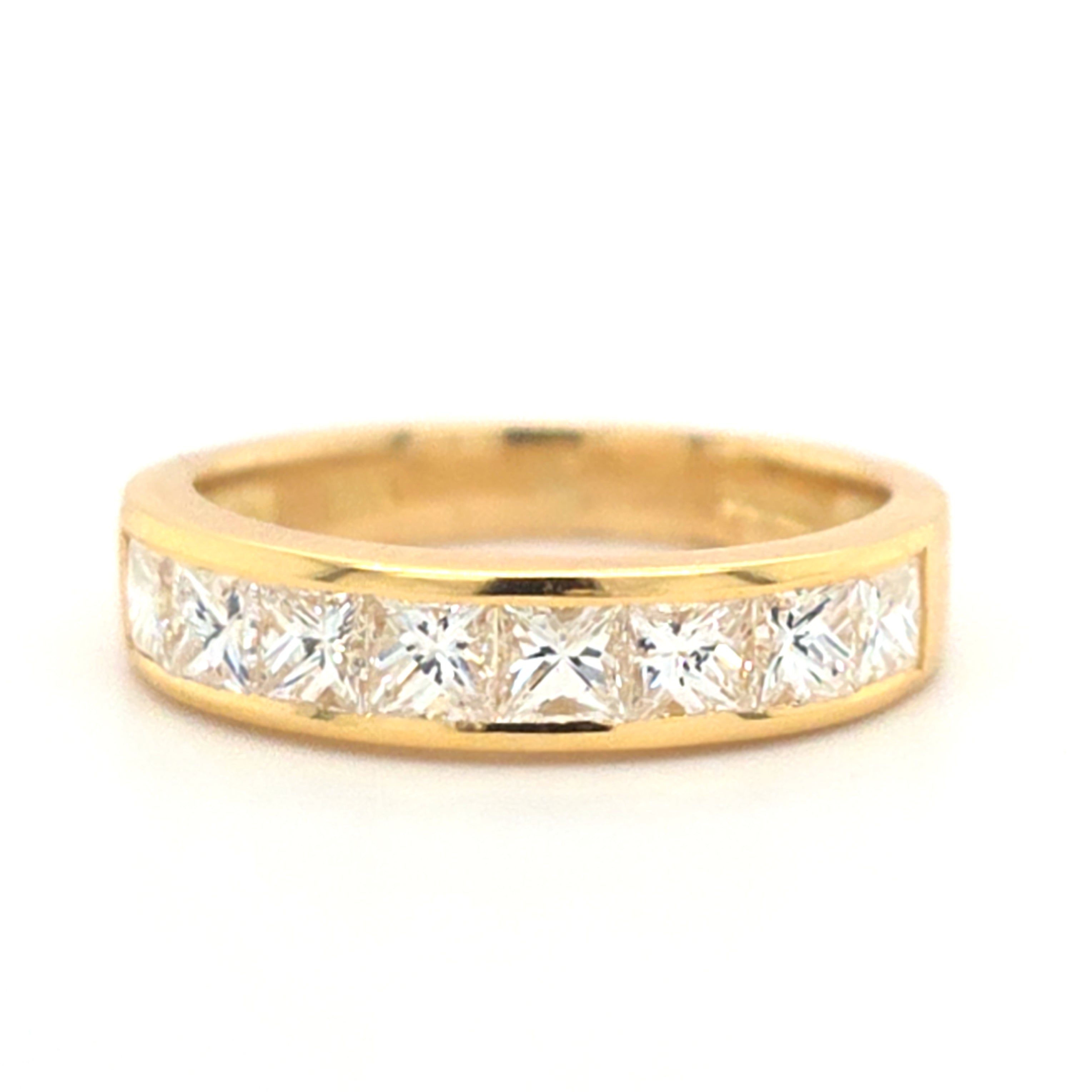 Timeless elegance meets modern sparkle with this stunning eternity ring. Featuring eight brilliant princess-cut diamonds totalling 1.25 carats, each stone is expertly channel-set for a seamless, sophisticated look that catches the light from every angle. Perfect for celebrating forever moments or adding a touch of glamour to your everyday style. This piece whispers luxury without shouting about it—just pure, understated brilliance that'll have everyone asking where you got it.