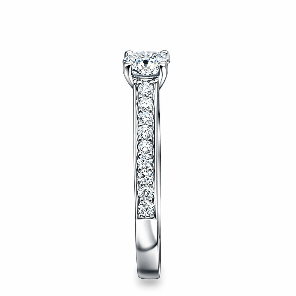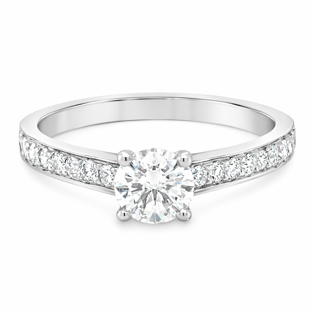 Round Brilliant Cut 0.50ct Diamond Engagement Ring with Diamond Shoulders
