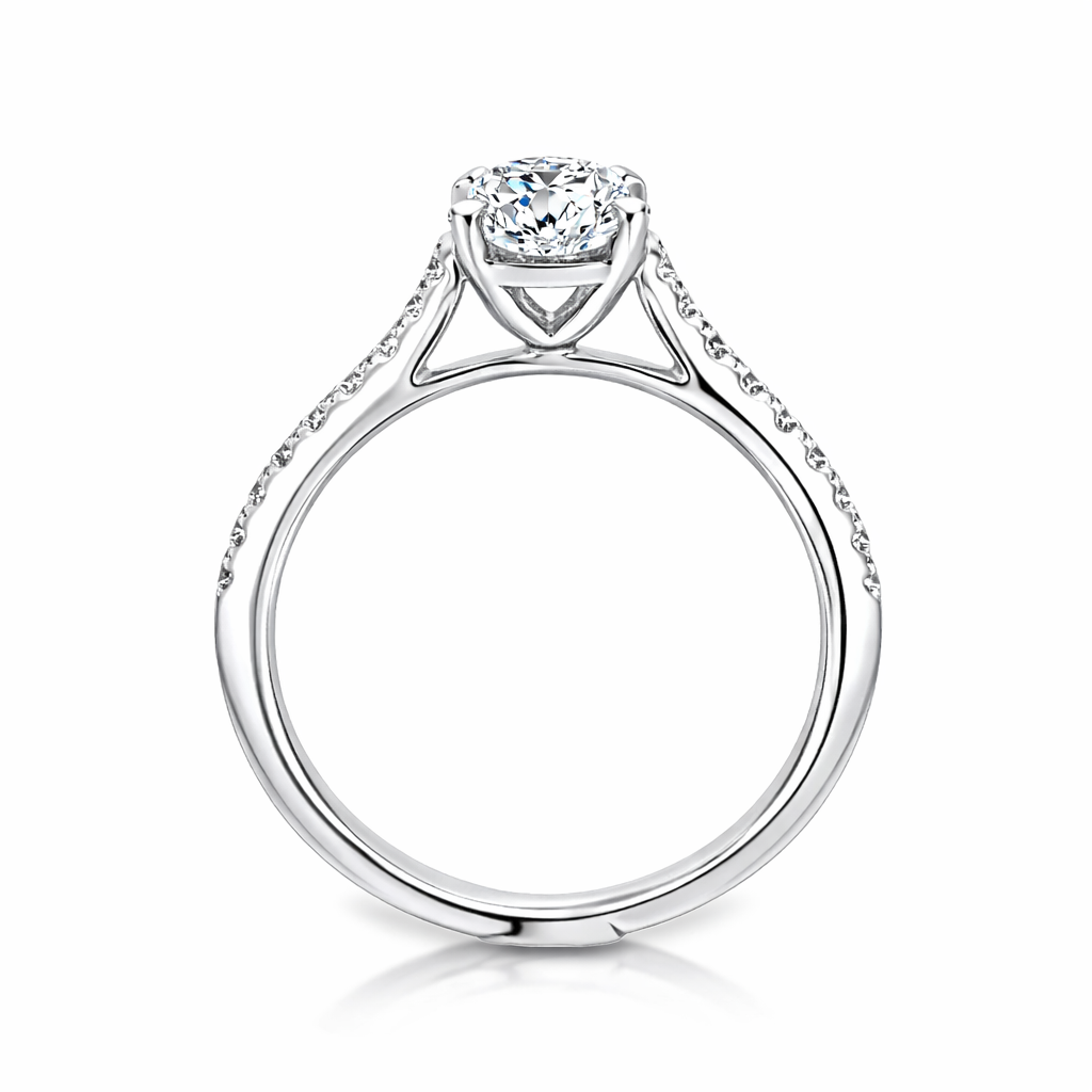 Round Brilliant Cut 1.00ct Diamond Engagement Ring with Diamond Shoulders