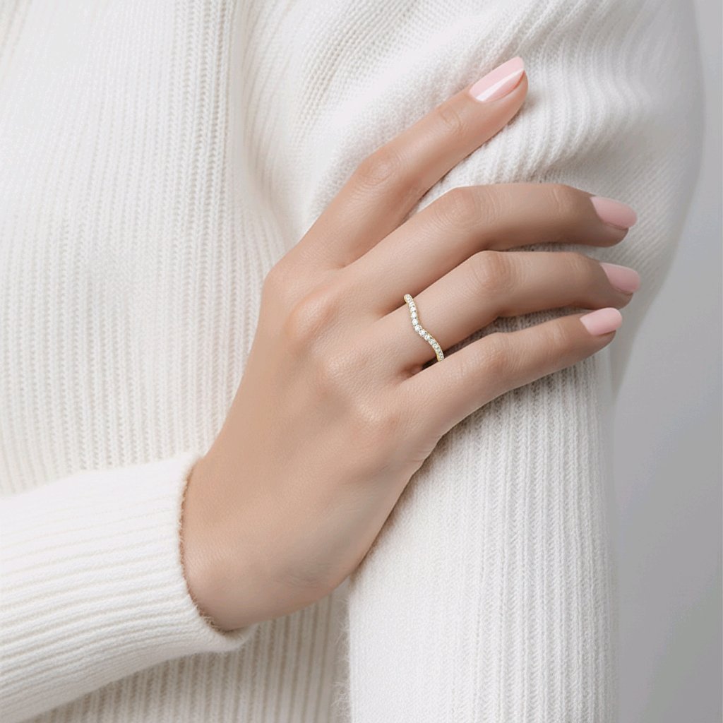 Round Brilliant Cut 0.24ct Diamond Micro Curved Wedding Band