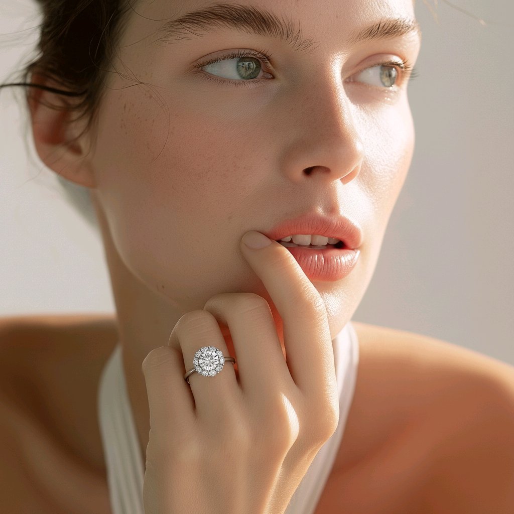 Round Brilliant Cut 0.50ct Diamond Halo Engagement Ring