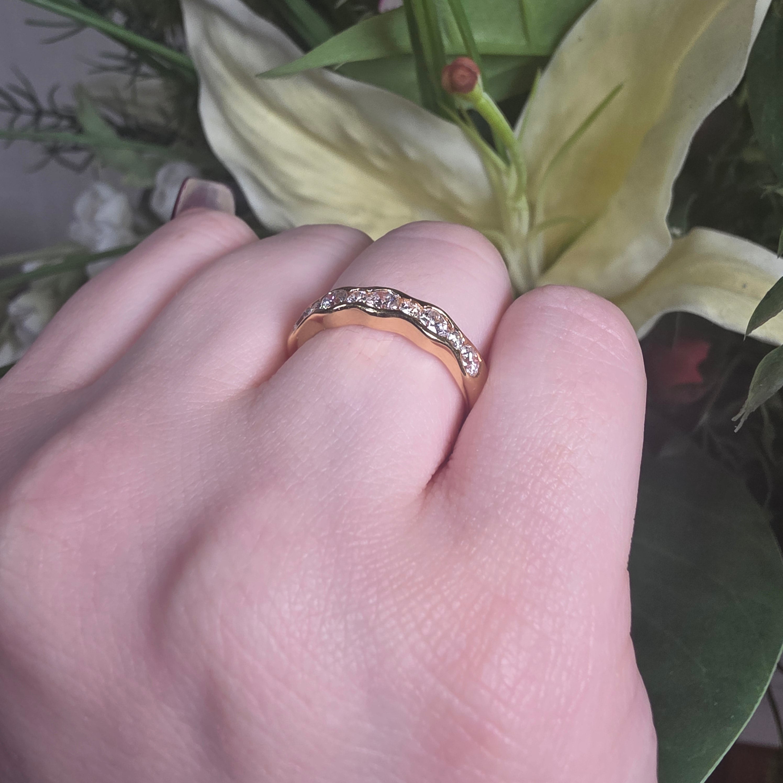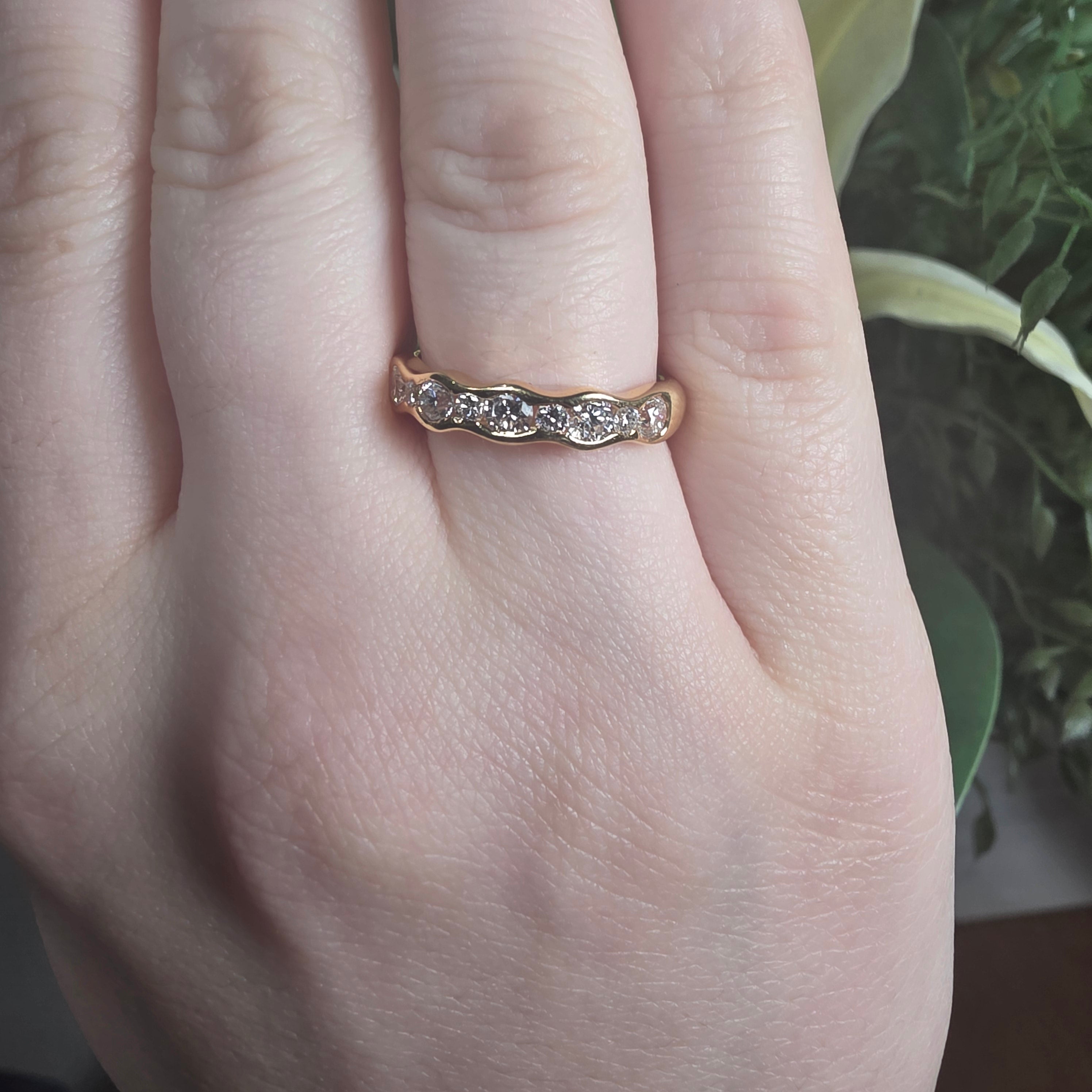Celebrate forever with this stunning eternity ring, where nine glittering round brilliant diamonds dance around your finger in perfect harmony. The centrepiece 0.82ct diamond steals the show, while its eight sparkling companions create an unbroken circle of brilliance. Channel-set for maximum sparkle and security, this ring catches light from every angle—whether you're saying "I do," marking a milestone, or simply treating yourself to something extraordinary. Timeless elegance meets modern glamour in this showstopper that'll have everyone asking where you got it.