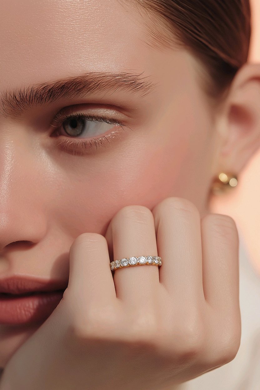 Celebrate forever with this stunning half hoop eternity ring, where seven brilliant-cut diamonds totalling 0.92 carats dance around your finger in timeless elegance. Each stone catches the light with mesmerising sparkle, creating a dazzling display that's perfect for marking life's most precious moments. The classic round brilliant cut ensures maximum brilliance, while the half hoop design offers a modern twist on a traditional favourite. Whether you're marking an anniversary, engagement, or simply treating yourself to something extraordinary, this ring is a radiant reminder that the best things in life truly are forever.