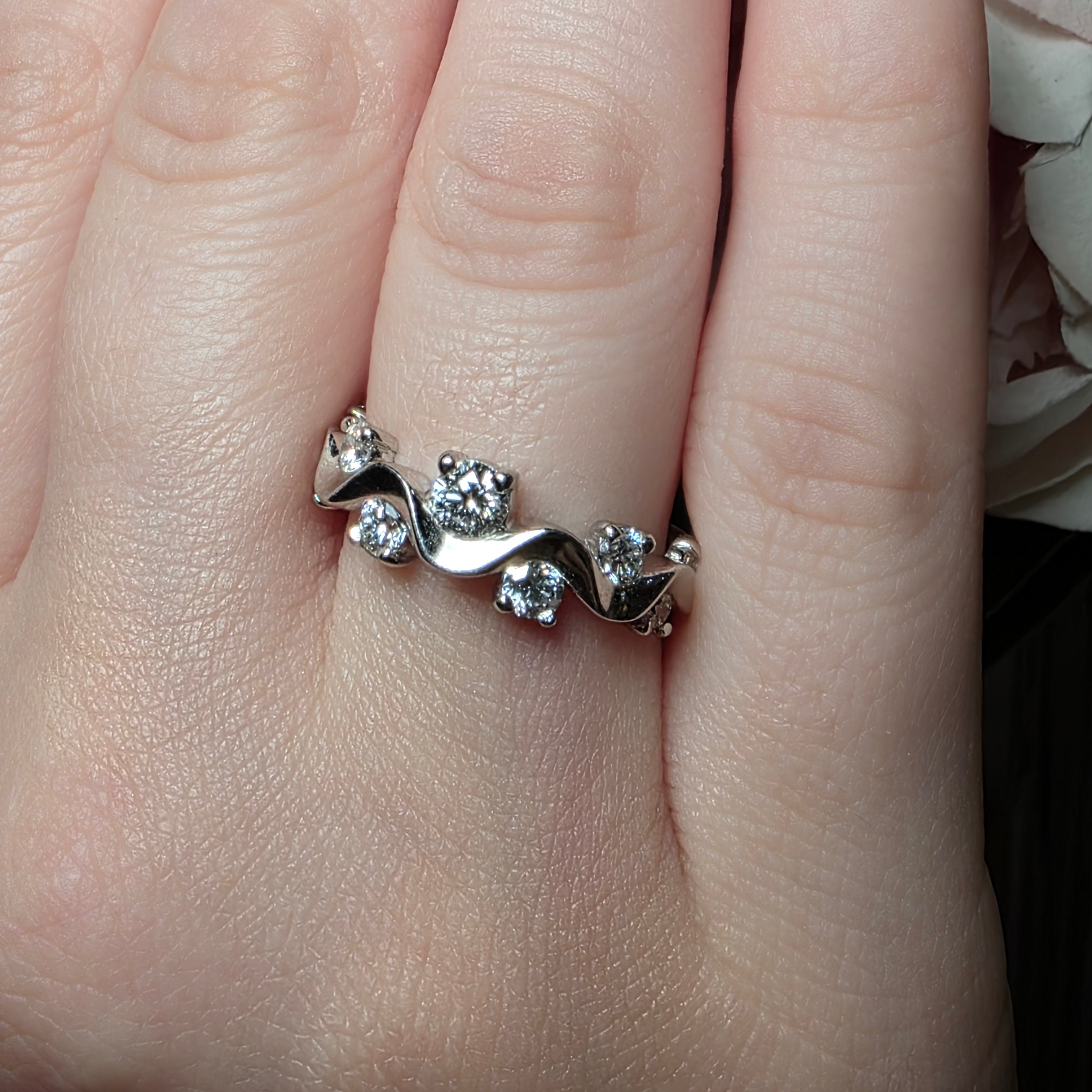 Celebrate timeless elegance with this exquisite eternity ring, featuring a stunning 1.00 carat round brilliant cut diamond as its centrepiece, complemented by ten additional diamonds set in a continuous band. The round brilliant cut maximises light refraction, delivering exceptional sparkle and fire. Crafted with precision, this eleven-stone design symbolises enduring love and commitment. Perfect for marking life's most precious moments or as a sophisticated everyday statement piece.