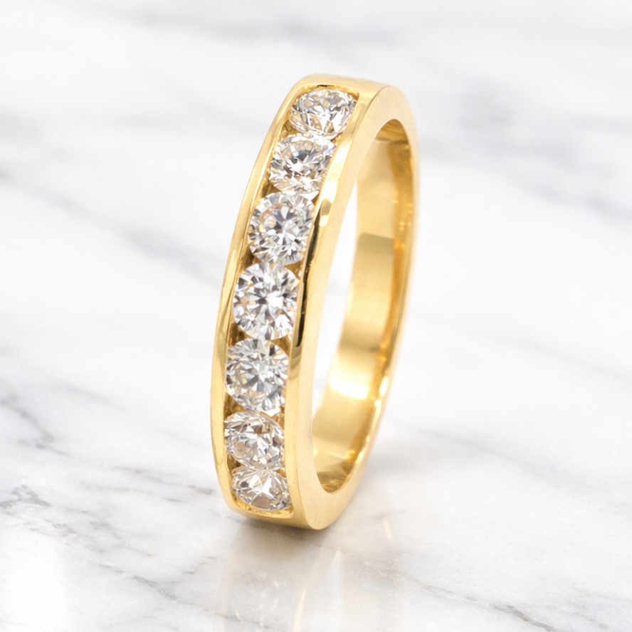 Round Brilliant Cut 1.00ct Diamond 7 Stone Half Hoop Eternity Ring