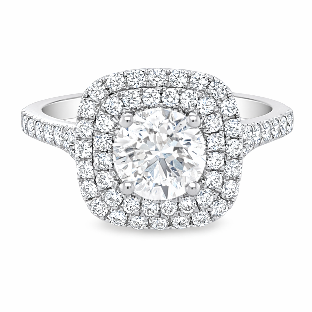 Round Brilliant Cut 1.00ct Diamond Double Halo Engagement Ring