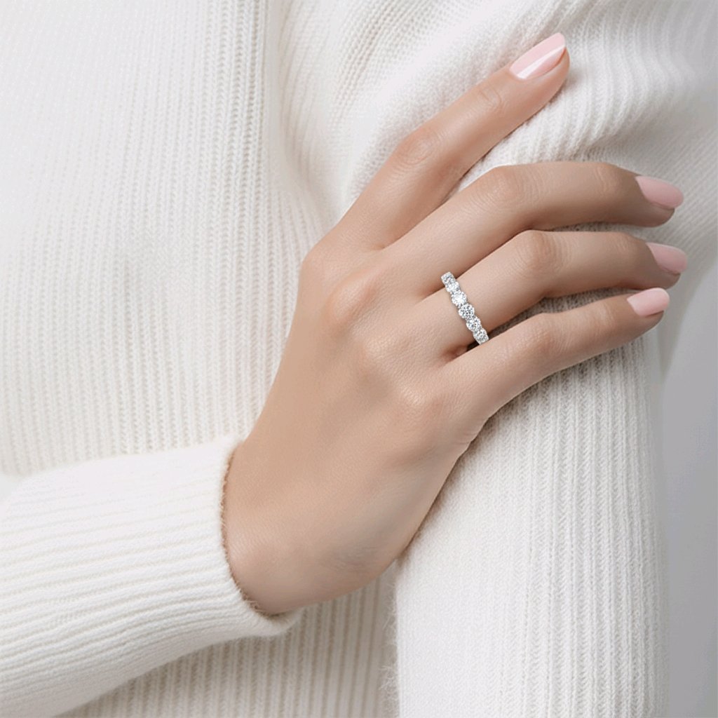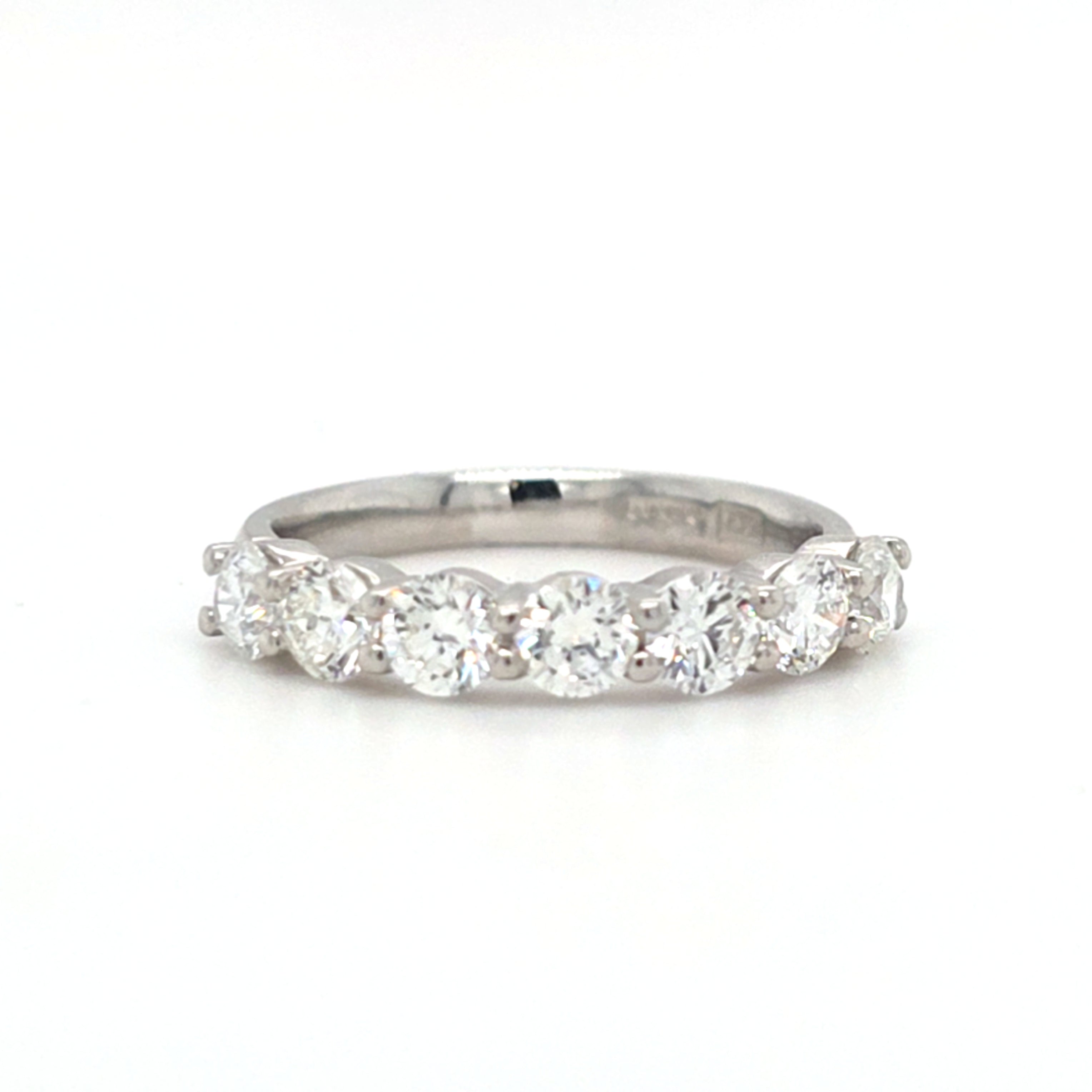 Celebrate timeless elegance with this exquisite 7 stone eternity ring, featuring a stunning 1.33ct round brilliant cut diamond as its centrepiece. Each stone is meticulously selected and set to create a continuous sparkle that symbolises eternal love and commitment. The round brilliant cut maximises light refraction, delivering exceptional brilliance and fire. Crafted with precision by master jewellers, this ring combines classic design with contemporary sophistication, making it an ideal choice for engagements, anniversaries, or as a cherished heirloom piece.