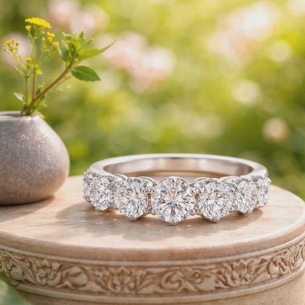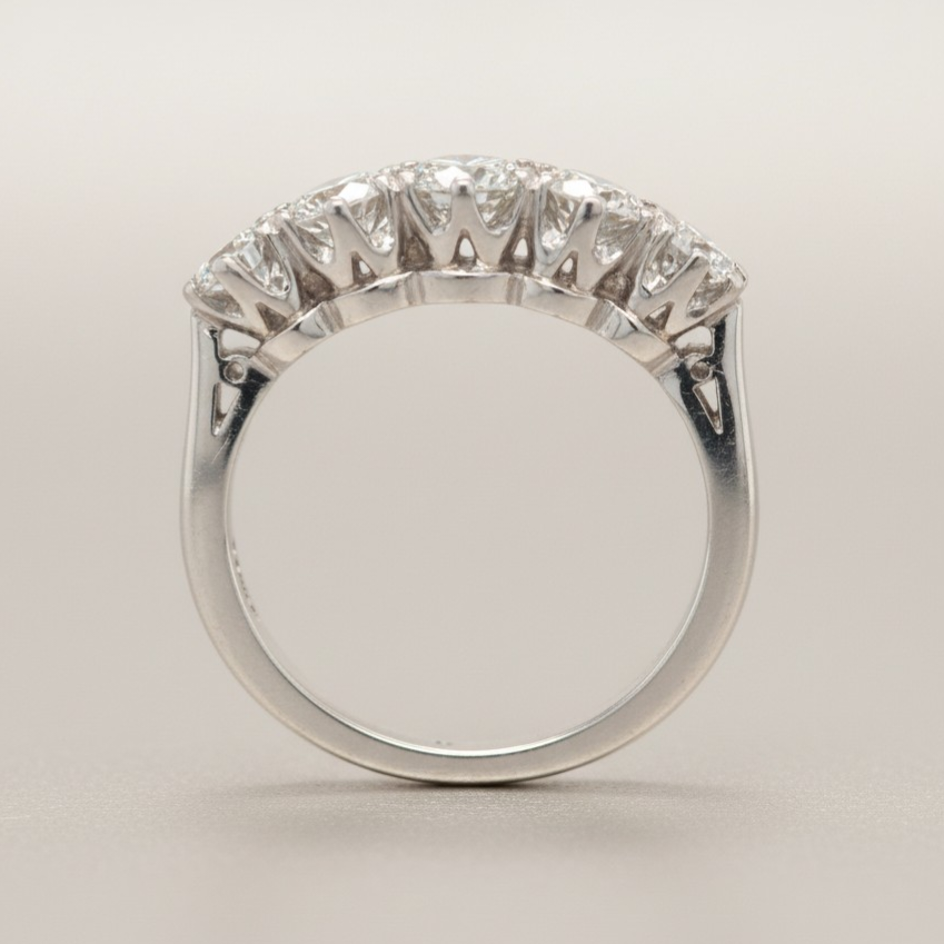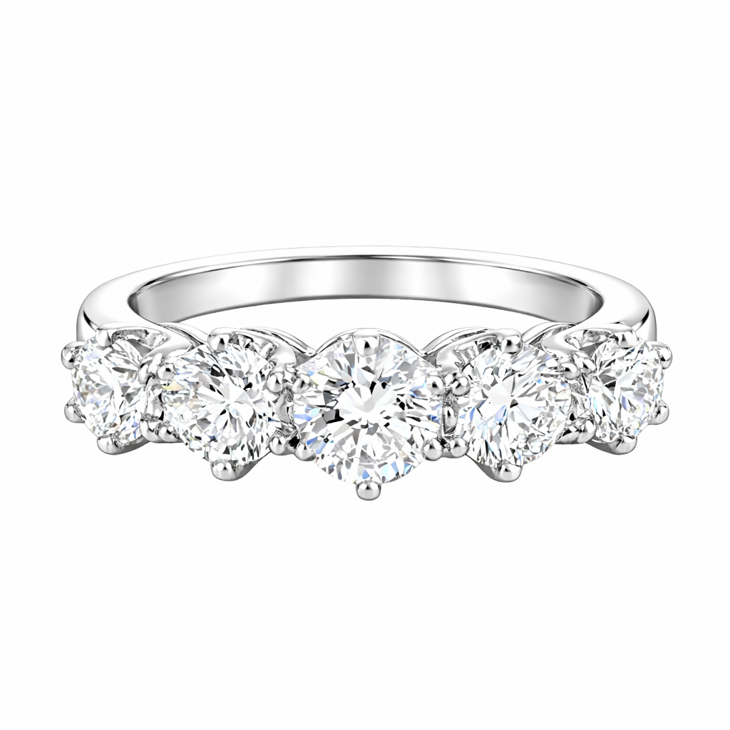 Celebrate timeless elegance with this stunning 5 stone graduating eternity ring, featuring a magnificent 1.45ct round brilliant cut diamond as its centrepiece. The graduating design creates a graceful flow of sparkle, with each stone carefully selected for brilliance and clarity. Perfect for marking life's most precious moments, this ring combines classic sophistication with contemporary craftsmanship. An investment piece that transcends trends, ideal for engagements, anniversaries, or as a cherished heirloom to pass down through generations.