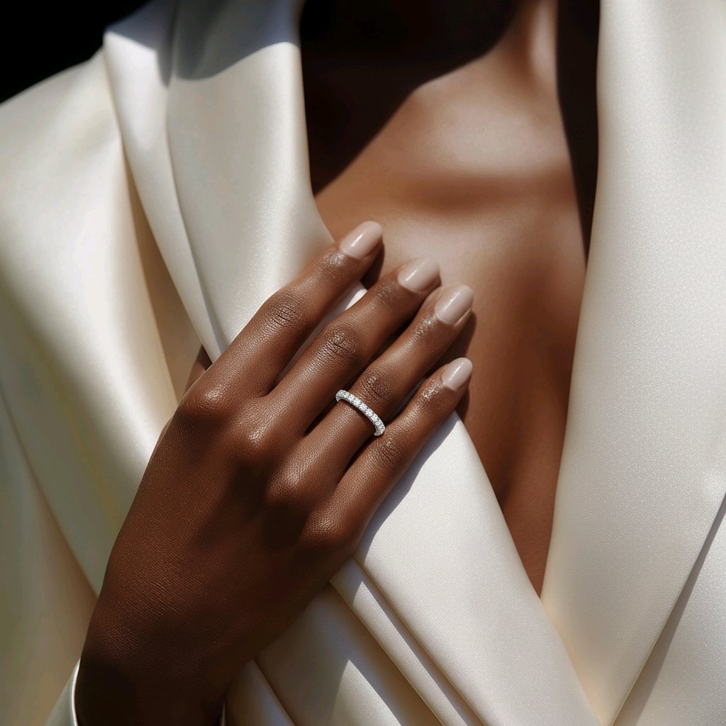 A stunning full hoop eternity ring showcasing a magnificent 1.53 carat round brilliant cut diamond as its centrepiece. The continuous band of precisely matched diamonds encircles the finger, creating an unbroken symbol of eternal commitment. Crafted with meticulous attention to detail, this piece combines timeless elegance with exceptional sparkle. The round brilliant cut maximises light performance, ensuring your diamond radiates brilliance from every angle. Perfect as an engagement ring, anniversary gift, or cherished heirloom to treasure for generations.