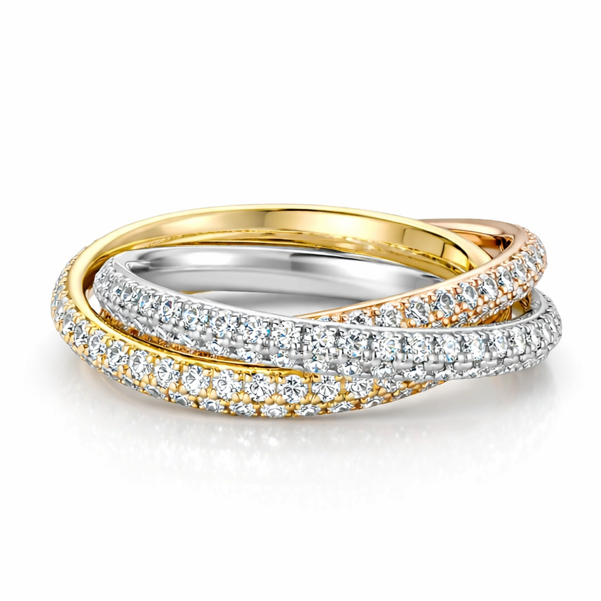 Round Brilliant Cut Diamond 3 Tone Russian Eternity Ring