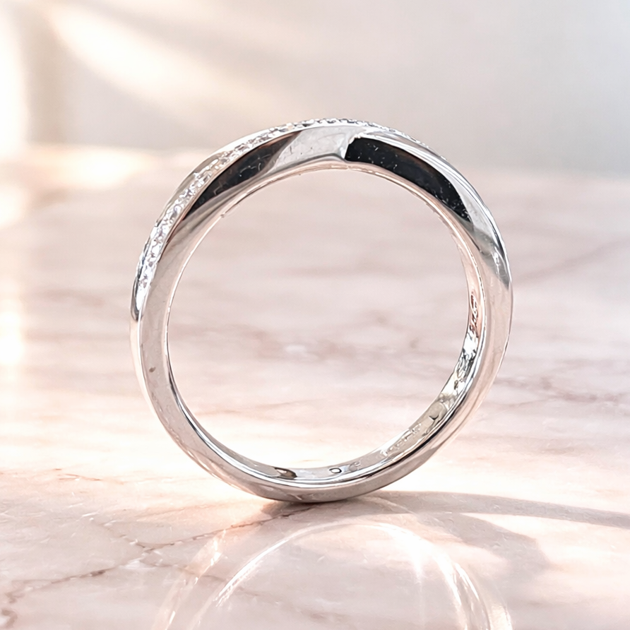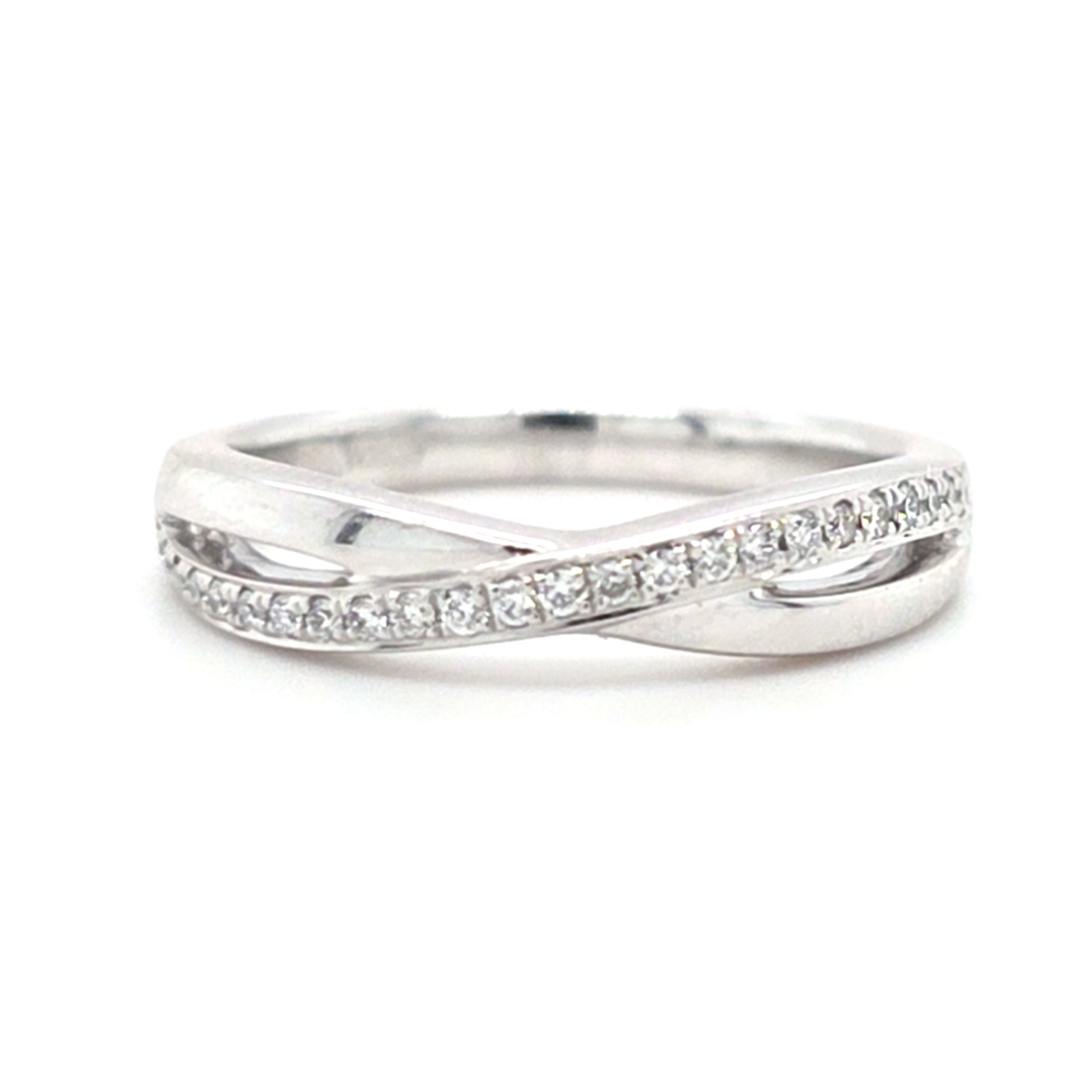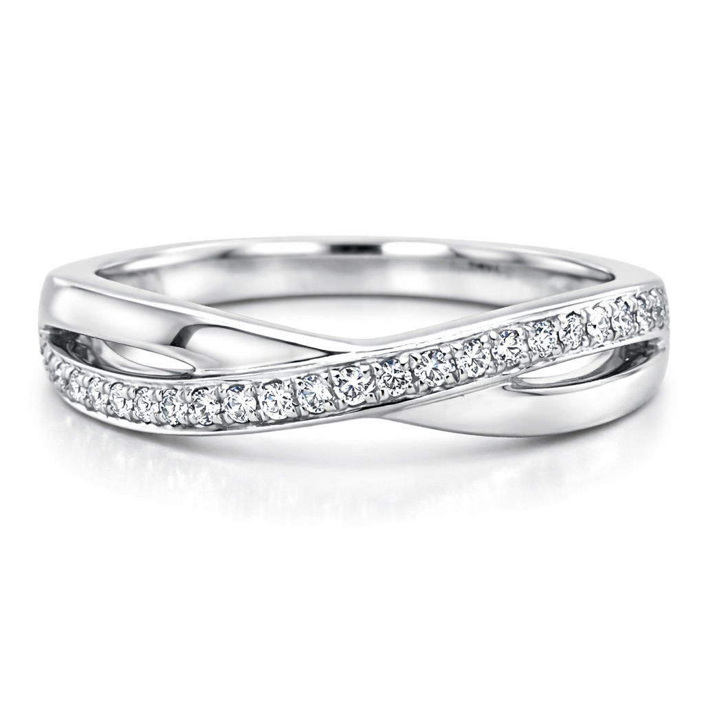 Round Brilliant Cut Diamond Grain Set Crossover Wedding Band 0.13cts