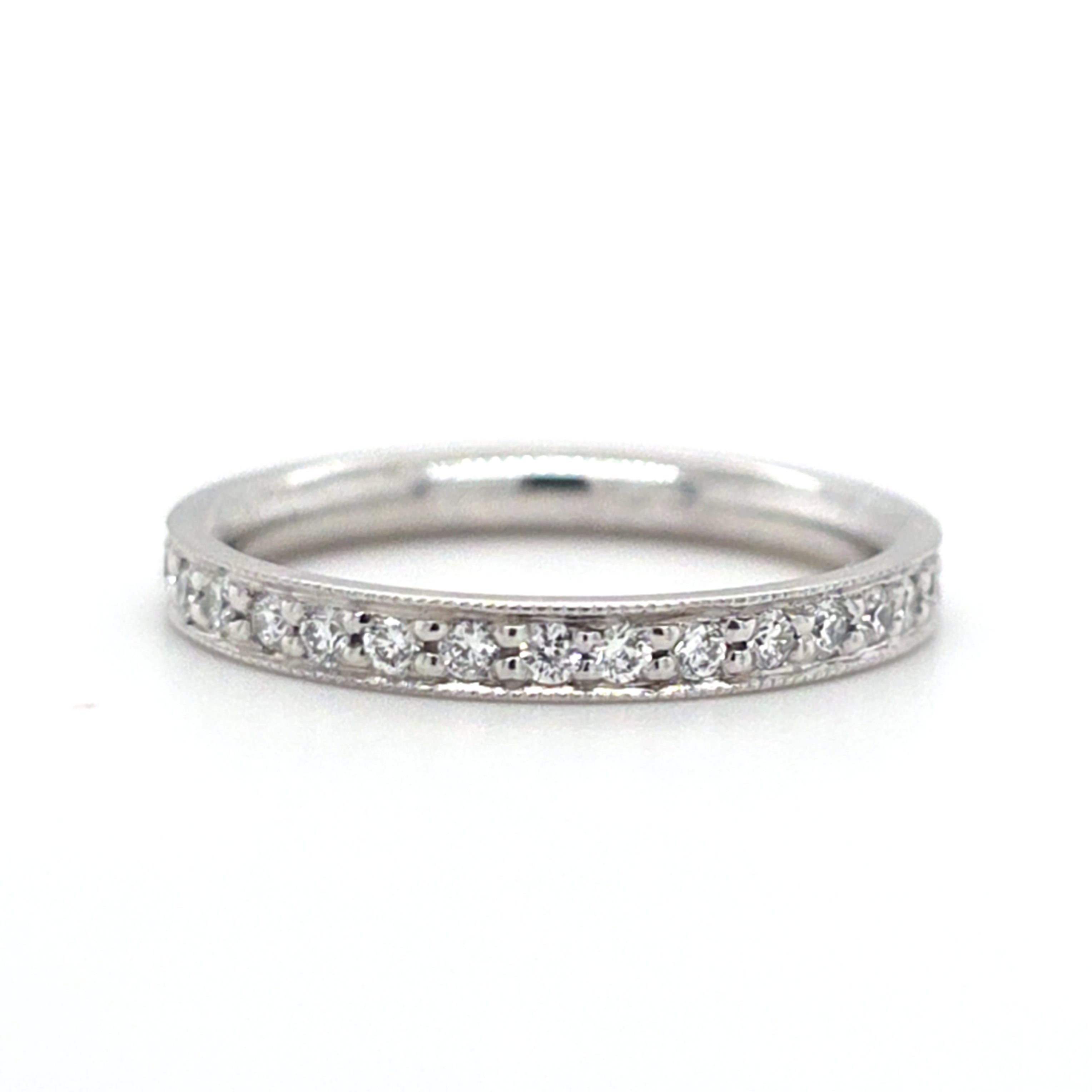 Round Brilliant Cut Diamond Grain Set Wedding Band With Milgrain Edges 0.51cts