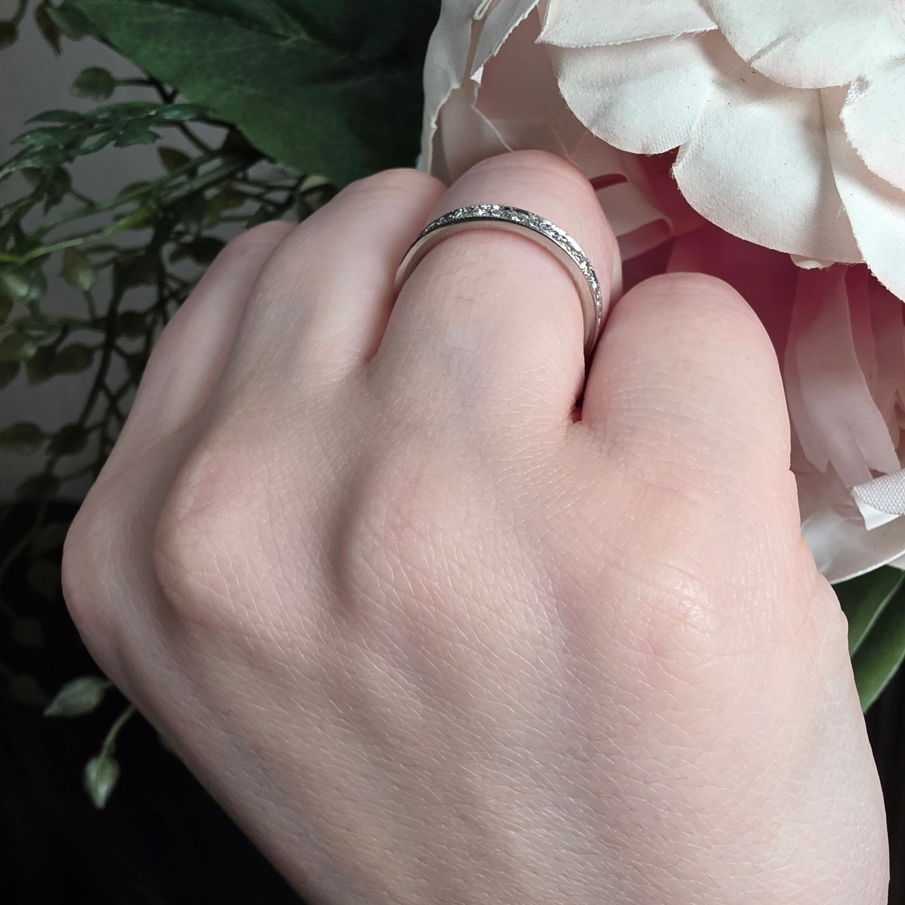 Round Brilliant Cut diamonds showcase exceptional sparkle and fire in this elegant wedding band, expertly grain set for secure, timeless appeal. The 0.51-carat total weight delivers substantial presence without overwhelming the design, whilst delicate milgrain detailing along the edges adds vintage sophistication and refined craftsmanship. This versatile piece complements engagement rings beautifully or stands alone as a statement band.