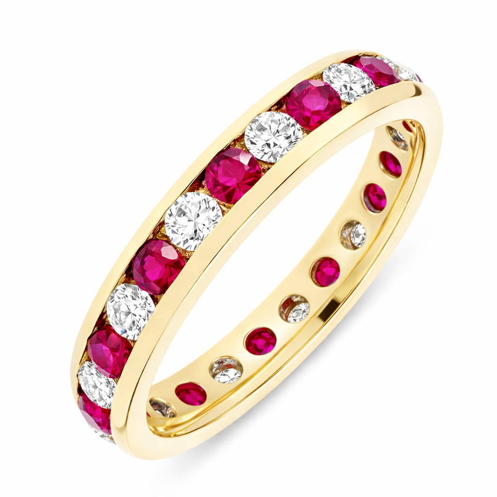 Round Brilliant Cut Ruby & Diamond Full Hoop Eternity Ring