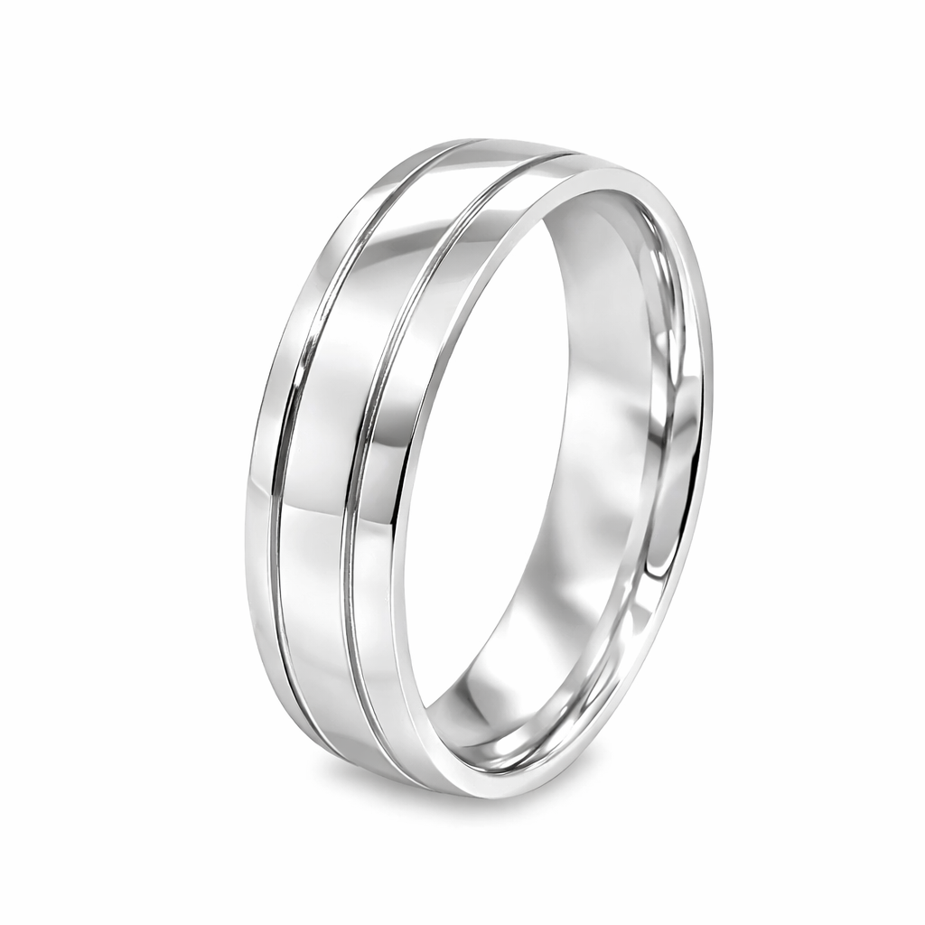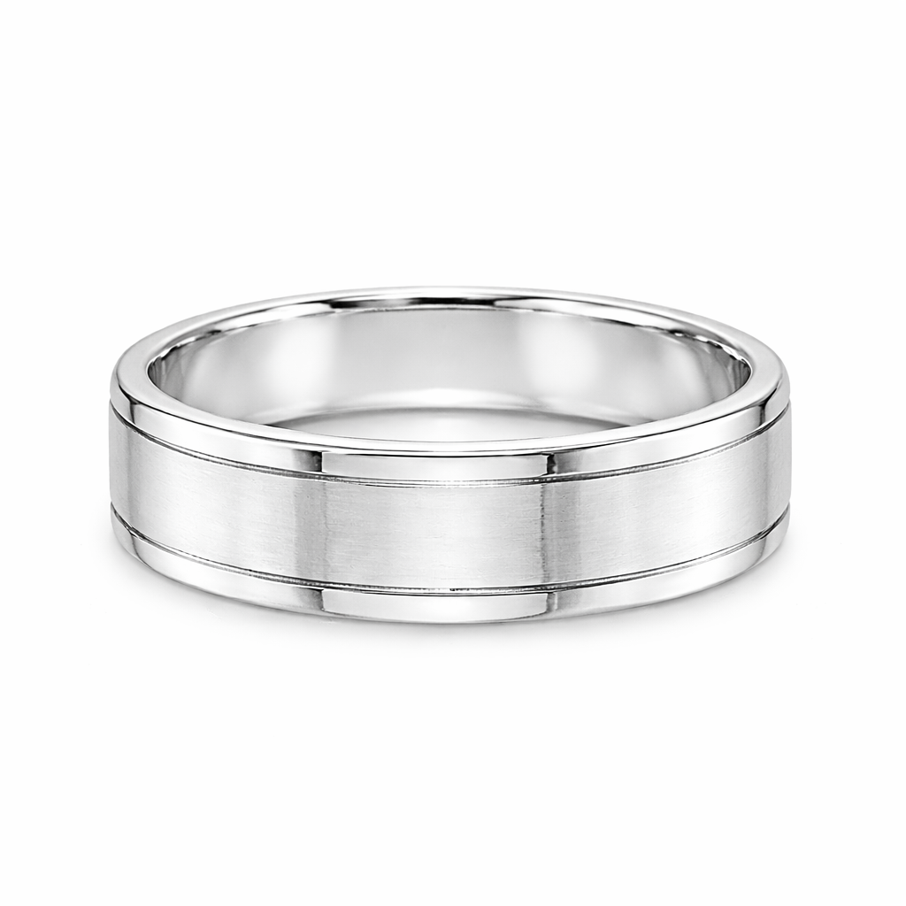 Traditional Court 6mm Wedding Band With Matt Centre & Line Detail